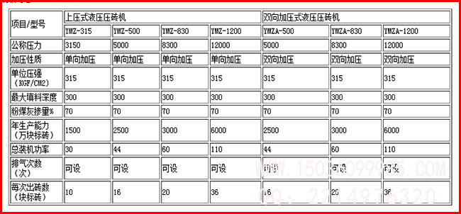 四柱壓磚機技術參數